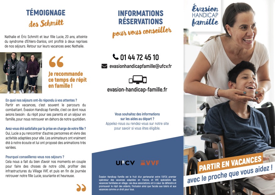 Offre de répit – Partir en vacances avec le proche aidé. Les séjours ont lieu sur des sites VVF (Village Vacances Famille).