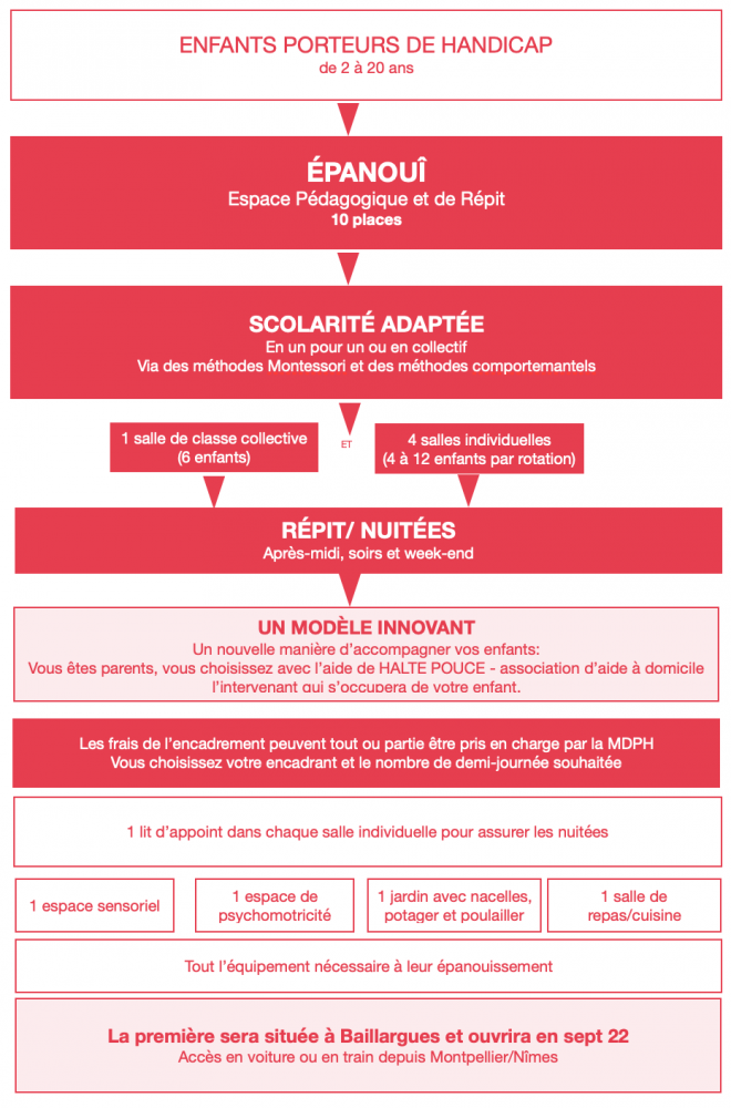 Elle s’engage donc vers la création de lieux d'accueil pédagogique et de répit, capable d’accueillir des enfants et adolescents, pour des accueils à la carte.